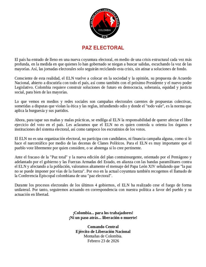 GUERRA PSICOLÓGICA CONTRA EL ELN EN EL CHOCÓ. La conducción estratégica del Frente de Guerra Occidental del ELN saluda al pueblo colombiano y a las comunidades étnicas del Pacífico biodiverso…